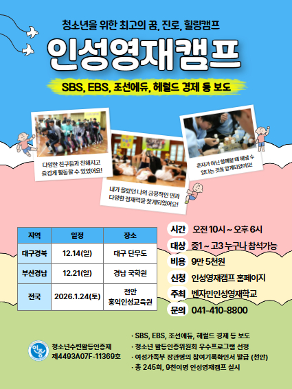 꿈을 찾는 1년, 벤자민인성영재학교2025년 4/4분기교육비 납부 안내 드립니다