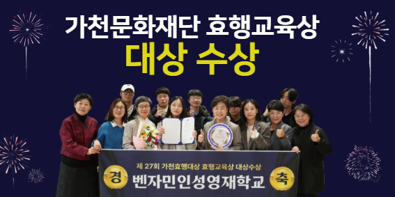 벤자민인성영재학교, ‘제27회 가천문화재단 효행교육대상’에서 학교부문 대상수상