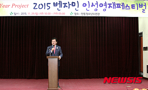 | 【서울=뉴시스】벤자민인성영재학교(교장 김나옥) 경북학습관은 지난 29일 경북 안동시청소년수련관에서 '벤자민 인성영재 페스티벌 & 학교설명회'를 개최했다. 손광영 안동시의원이 축사를 하고 있다. 2015.11.30. (사진=벤자민인성영재학교 제공) |